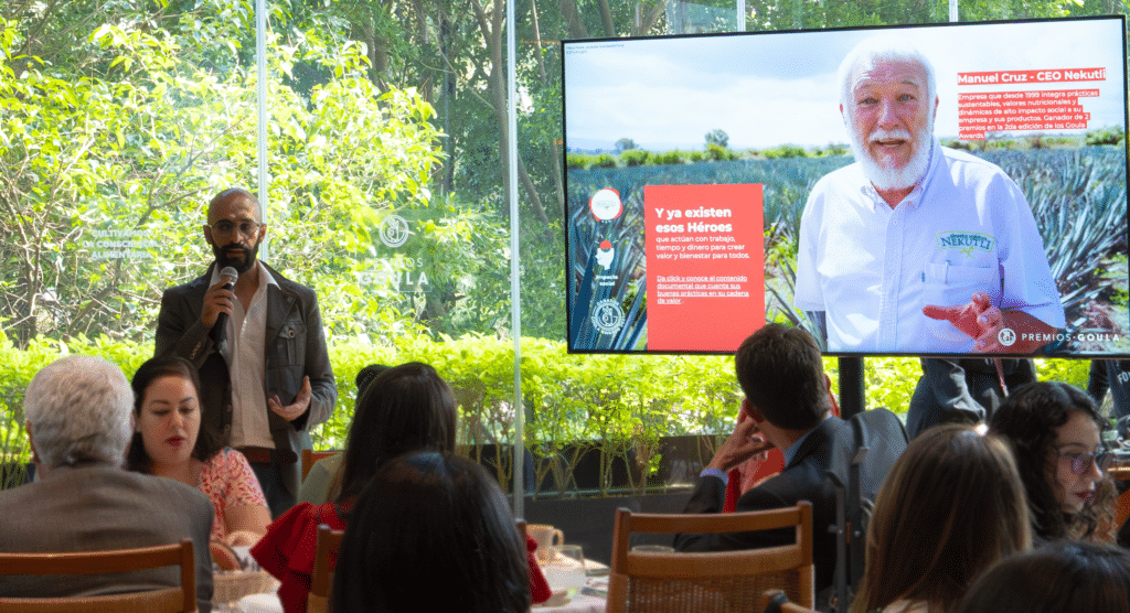 Manuel Cruz, CEO de Nekutli, una de las empresas ganadoras de Premios Goula en años anteriores, fue claro en su visión: “Si las empresas no se comprometen con la sostenibilidad, se están creando un problema de sobrevivencia, porque ¿quién les va a surtir la materia prima? Y justamente porque cada vez las condiciones son más difíciles, cada vez hay menos gente en el campo que quiera dedicarse a las labores del campo.”
